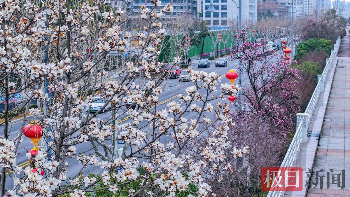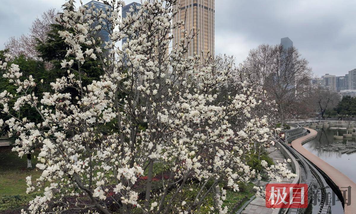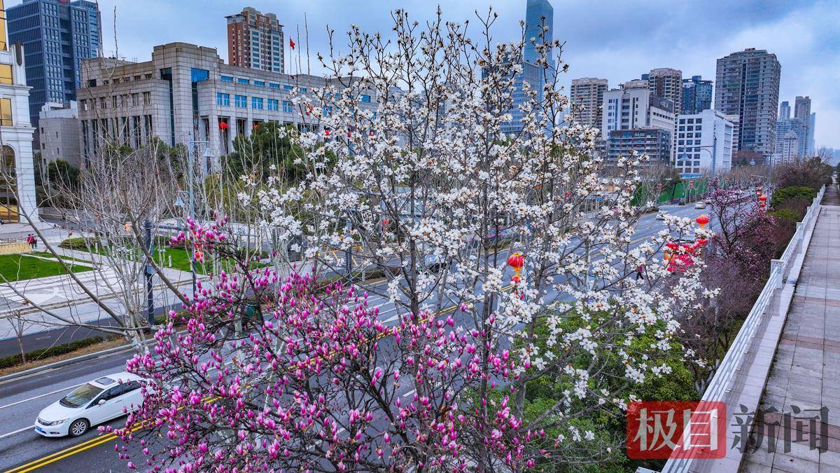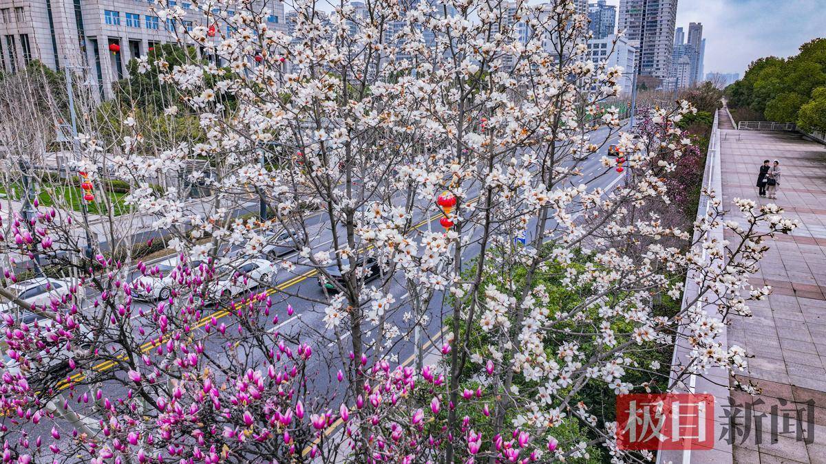 在春雨的滋润下,春天最早登场的“花仙子”玉兰花,已在武汉三镇竞相绽放。2月26日,汉口江滩长堤内外的玉兰花有的洁白如雪,有的粉嫩似霞;有的盛开枝头,有的含苞待放,与江景、节日街景相映成趣。游客们纷纷驻足观赏,感受这份春日的浪漫。