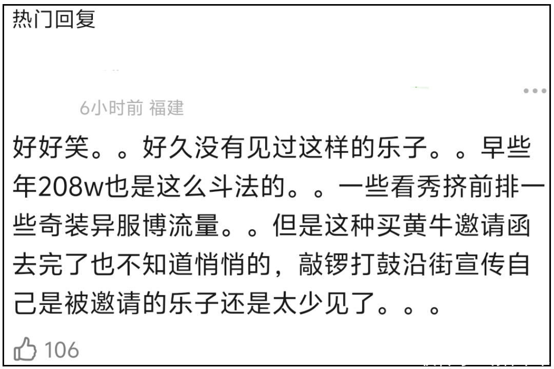 随后还有其他知情人出面补充,表示岳雨婷的衣服都是自己买的,并非品牌提供,被第一场大秀品牌除名之后,他们又想办法买通了一位明星造型师,不出意外,应该是可以进场看秀了,至于花费金额,大概是30万?