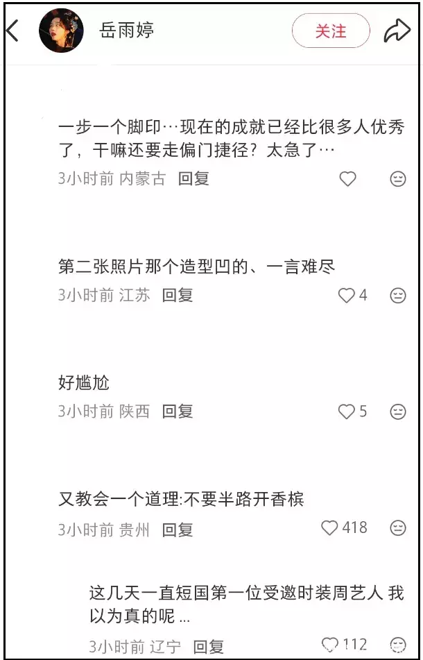 甚至知情人都是在岳雨婷评论区留言爆料的,贴脸开大啊!