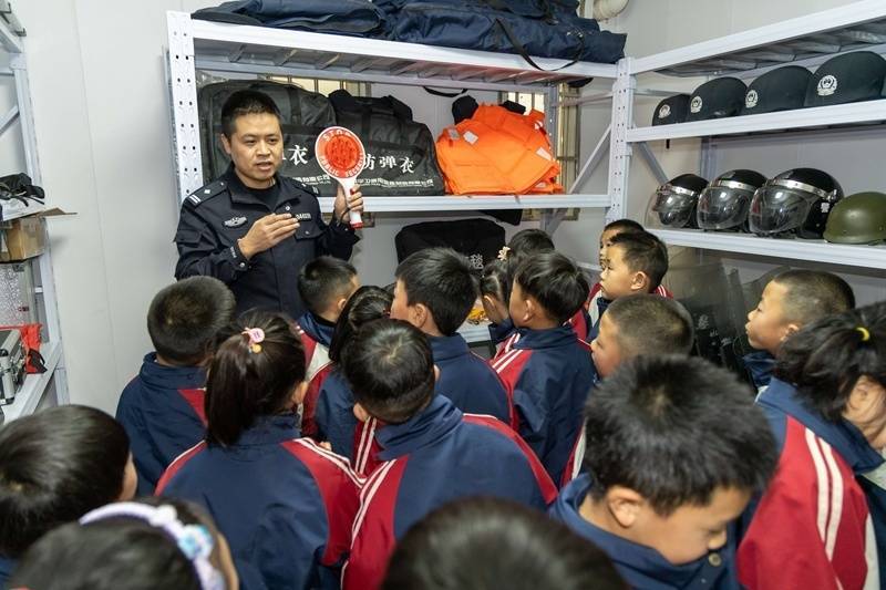 表演结束后,民警化身“安全导师”,带领孩子们参观派出所办公区域与装备展示区,细致讲解各类警用装备的功能用途,并结合真实案例科普防拐骗、交通安全等安全防护知识,孩子们专注聆听、踊跃提问,好奇心与求知欲被充分点燃。