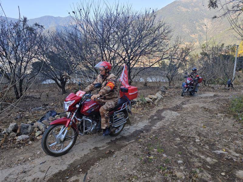 骑着摩托车的杨文波,准备巡山。德昌县委宣传部供图