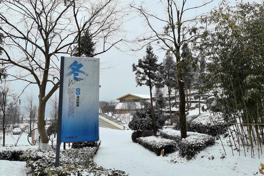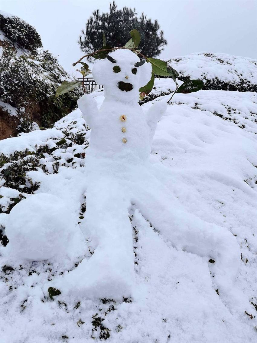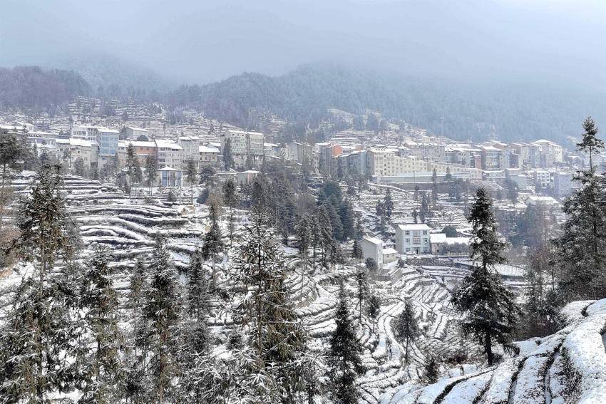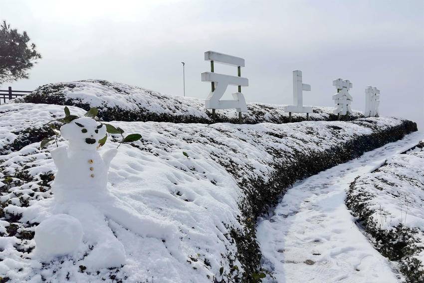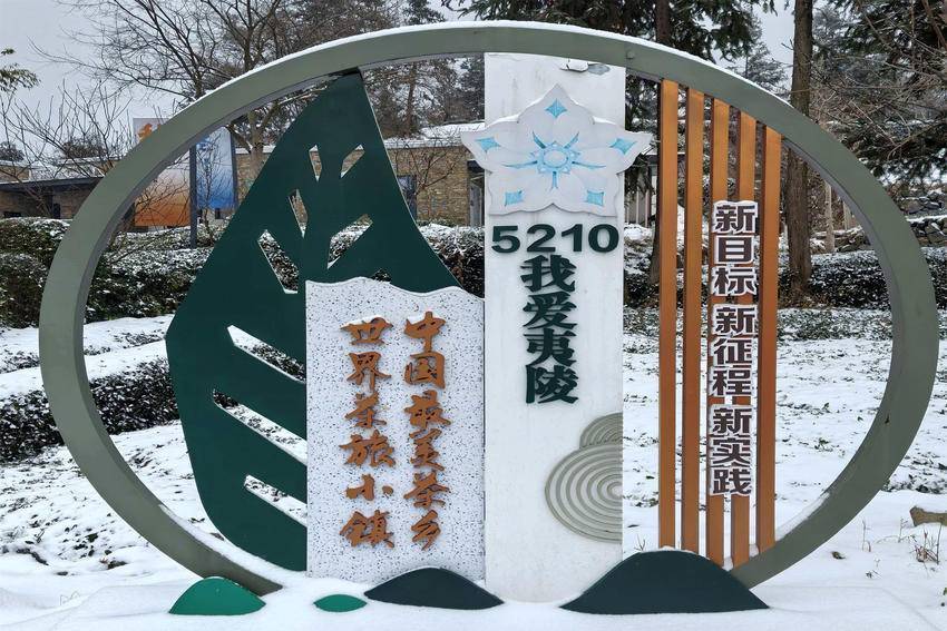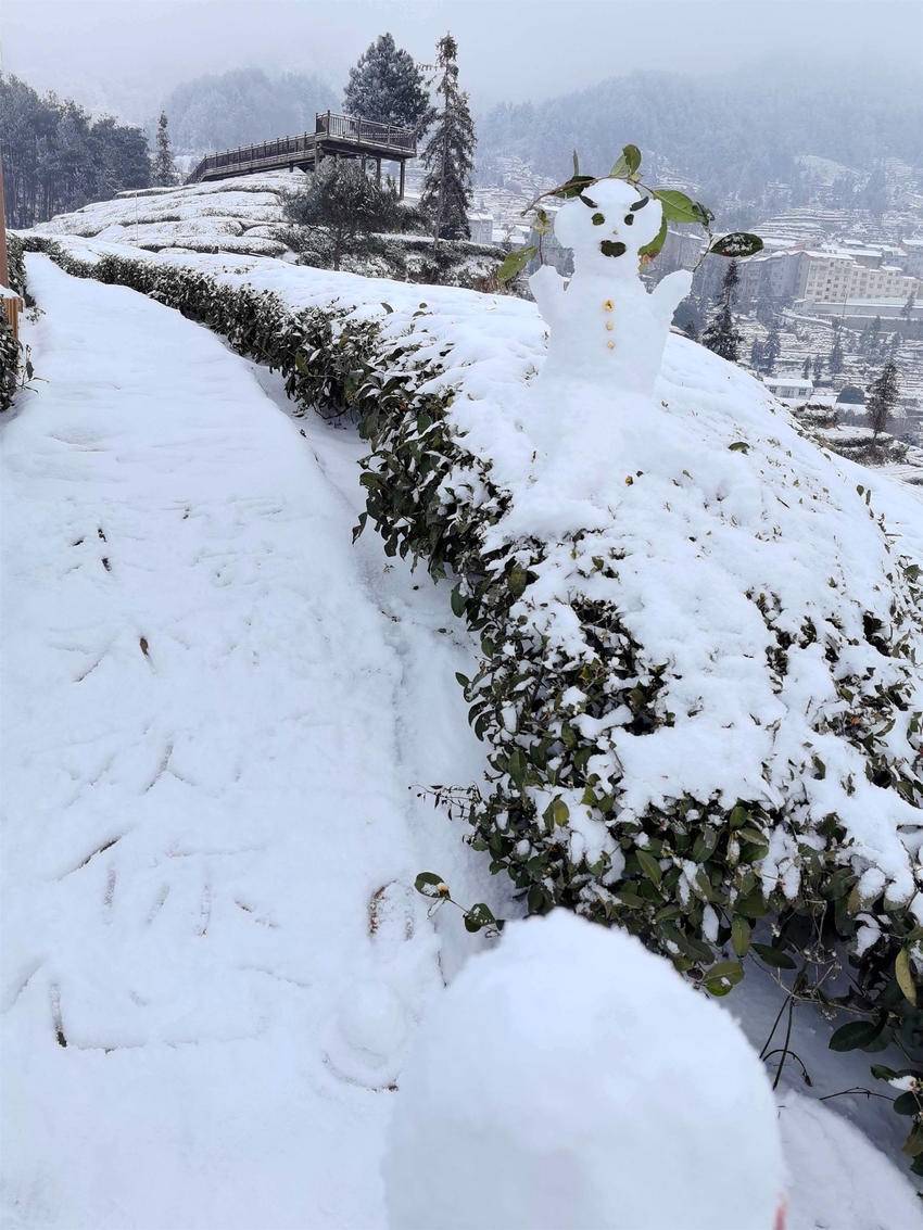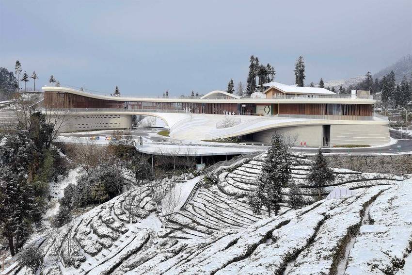 ↑ 2026年1月22日,在宜昌市夷陵区邓村乡,三峡茶旅小镇一带落雪后的生态茶园呈现一片银装素裹景象。