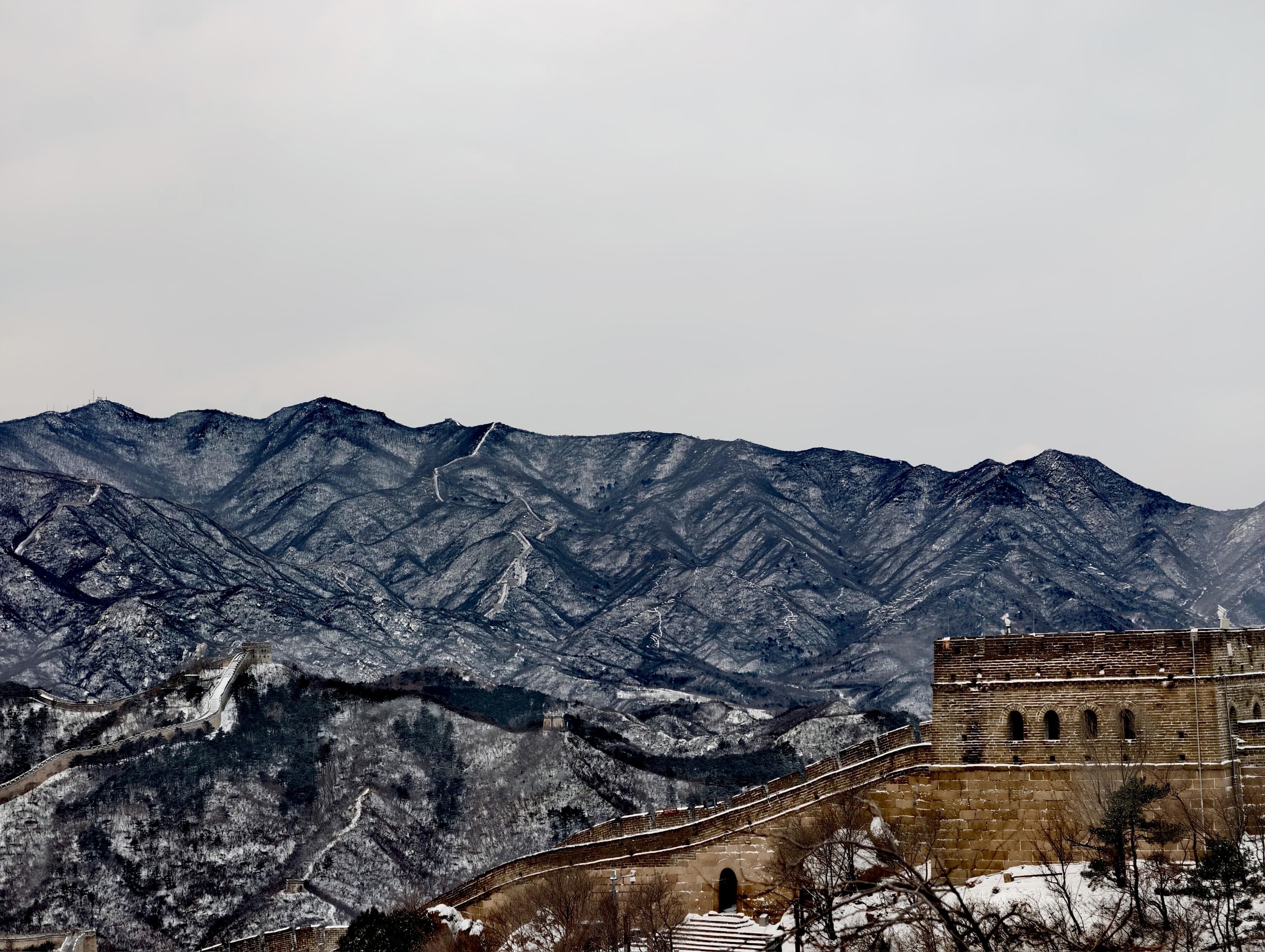 雪后如水墨画般的八达岭长城↓